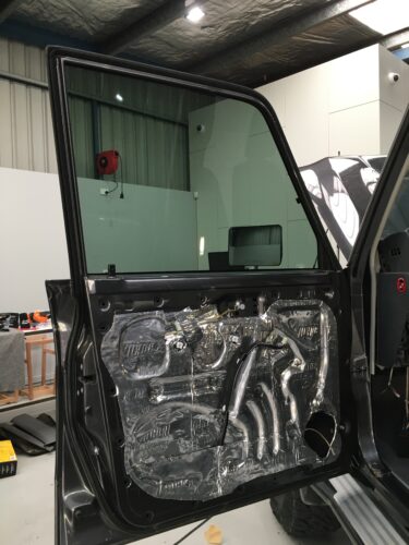 In addition to the deadening of the Cruisers doors we also applied a layer to the roof and back wall. This goes a long way towards taking the edge off the road noise generated by the aggressive tyres.